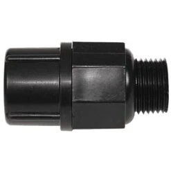The 1/2 Inch Male Hose Coupler is 8 1/3 inches in length, 5 1/4 inches in width, and 1 1/3 inches in height. It is used for creating custom hose lengths and repairing Leonard Soaker Hoses. It fits any standard 1/2 inch garden hose and has a male end connection.
