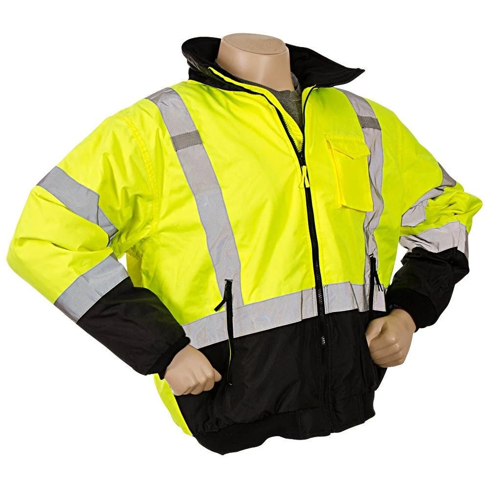 The bright top half and reflective stripes make the jacket highly visible for safety. The jacket is also ANSI/ISEA 107 2010 Class III compliant.