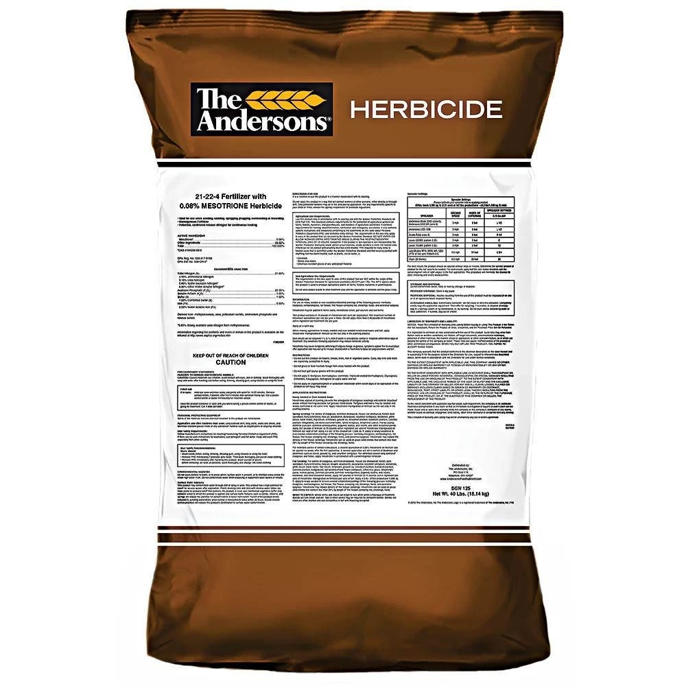 - Application Rates and Coverage: Packaged in a 40 lb. poly bag with a typical use rate of 187 lbs./acre (4.3 lbs./1000 sq. ft.). This applies the target rate of 0.15 lbs. of Mesotrione