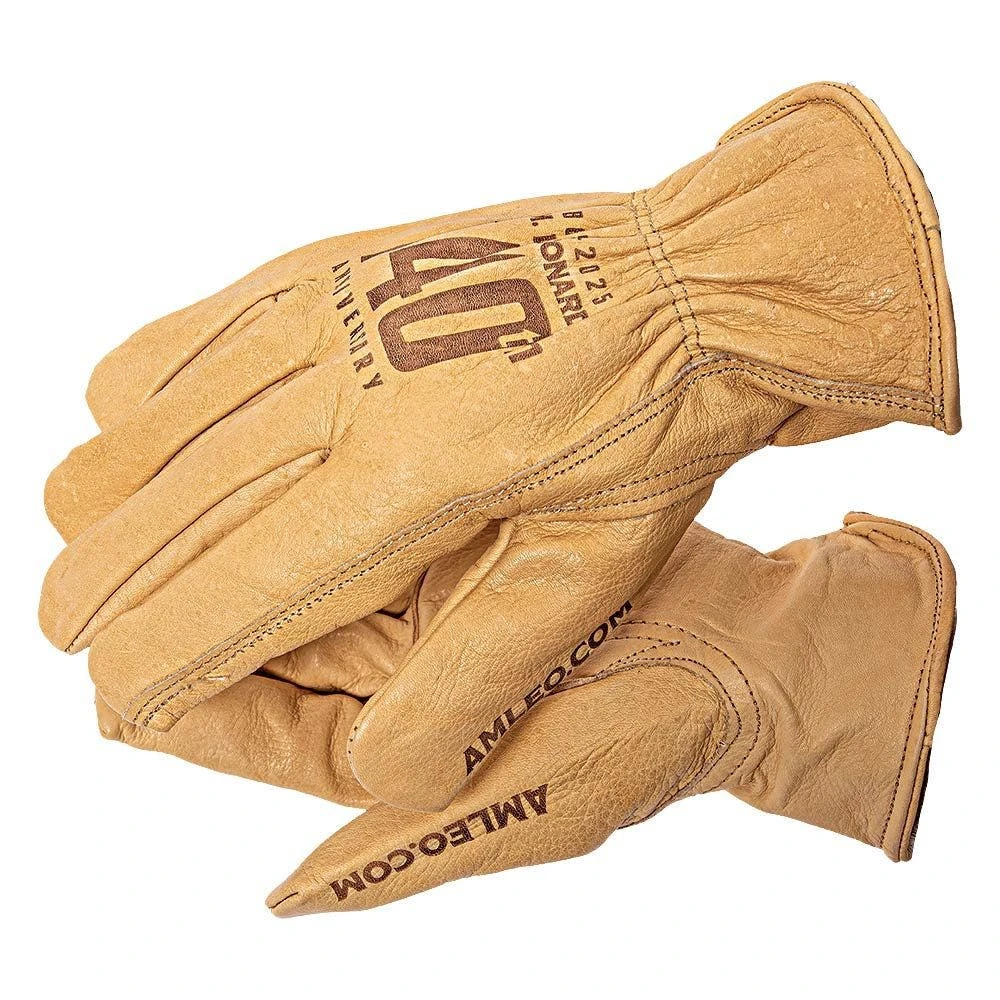 The gloves are made of naturally water-repellent tan full grain cowhide, providing durability and protection from wear & tear.