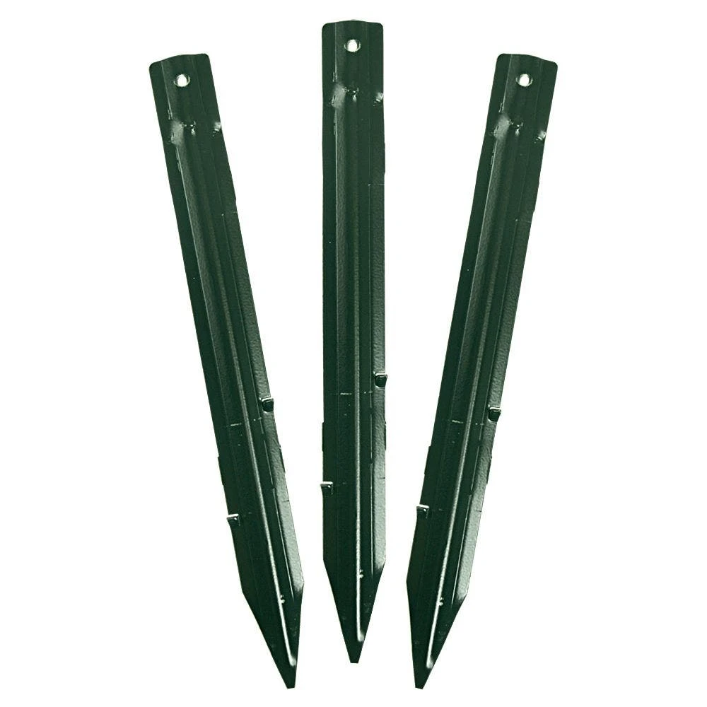 - The 8′ pieces come with 3 stakes and 3 slots to insert them
