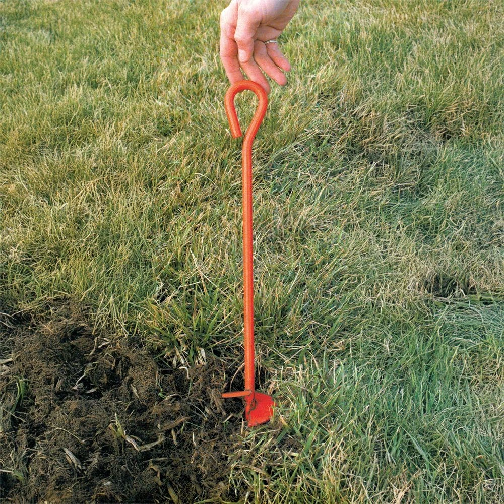 These earth anchors can be used to secure nearly anything, including tarps, tents, and temporary structures.