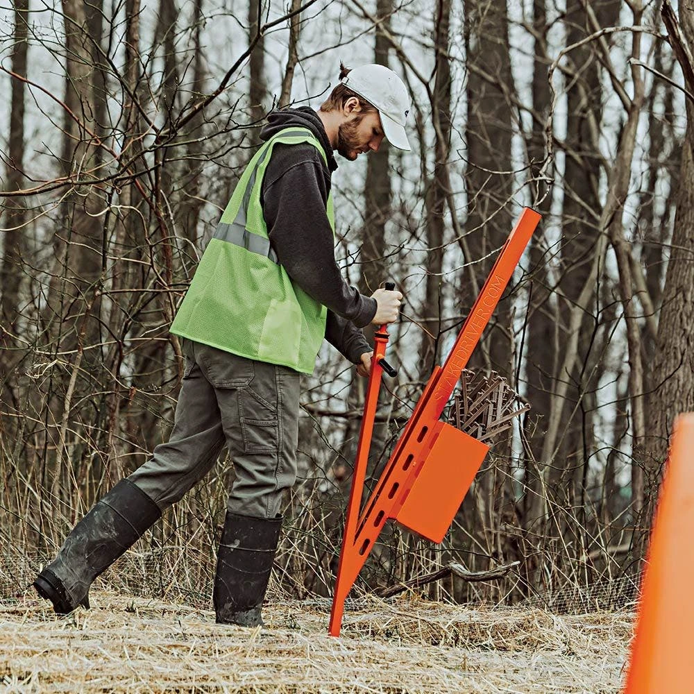The StakeDriver Tool is engineered for quick installation of 6in Biodegradable stakes, providing a 1:1 wood stake substitute with certifications available. Its comfortable design and efficient stake handling make it ideal for high-acreage ECB, DOT, and revegetation projects. Made in the USA, this tool is low maintenance and purpose-built for field use.