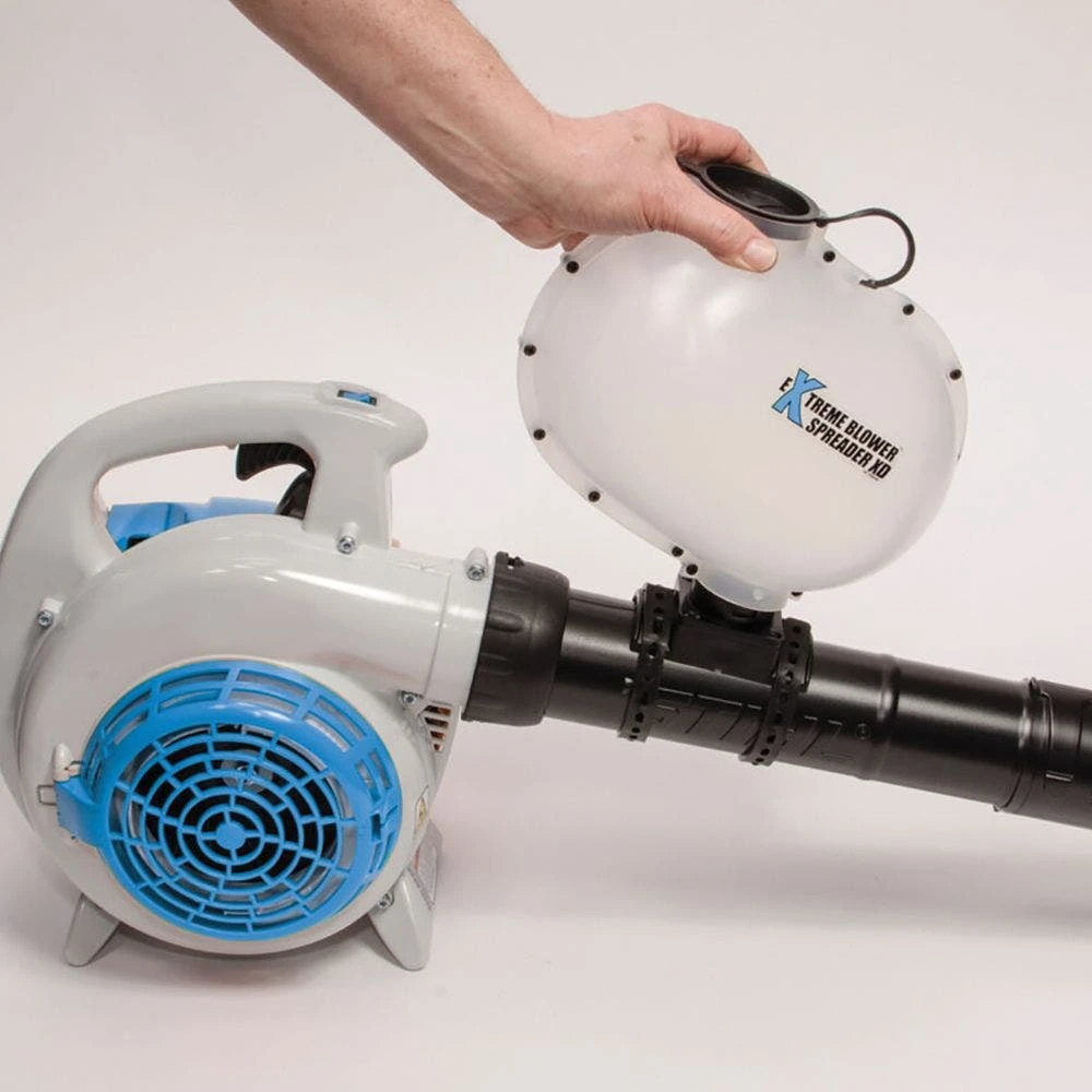 The Extreme Blower Spreader is a conversion kit that turns your leaf blower into a granular applicator. It spreads fertilizers, insecticides, weed control products, ice melt, and even sows seeds.
