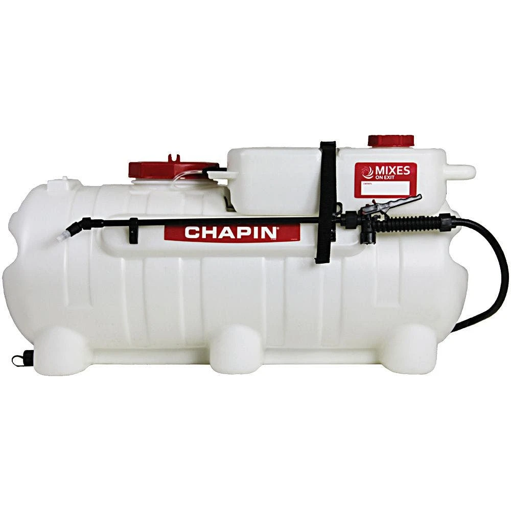 The Chapin Mixes on Exitâ„¢ Spraying System is a spraying system designed for use with ATVs, UTVs, and lawn tractors. It has separate tanks for water and chemicals and eliminates the need for premixing chemicals, eliminating waste and mess.