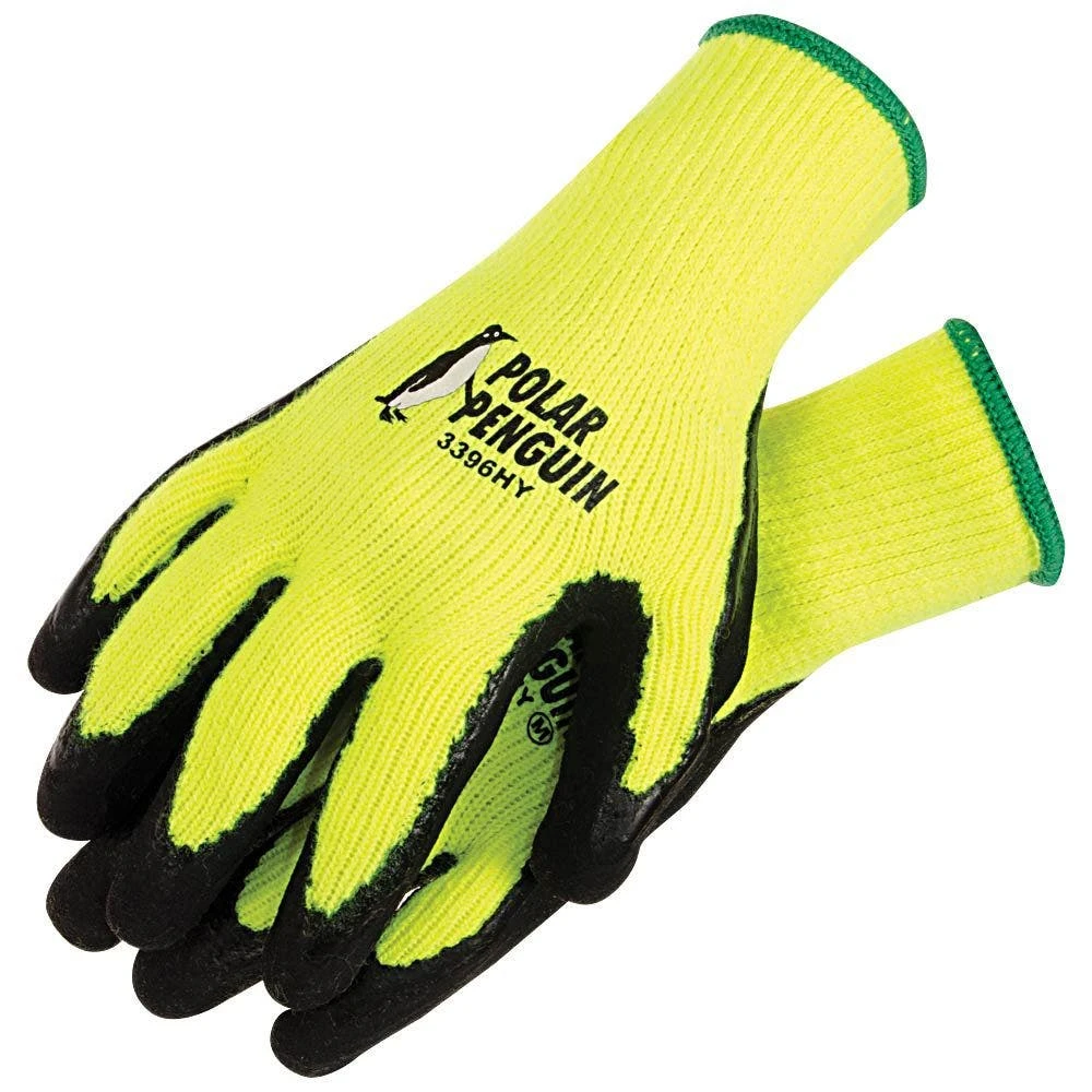 The Yellow Lined, Cold Weather Hi Viz Knit Gloves with Rubber Palm are most useful in outdoor work or cold warehouses where a good grip is essential. The gloves’ precurved design allows for easy finger flexing, and their terry insulation makes them comfortable to wear in cold weather. Additionally, their high visibility makes them helpful day or night, good weather or bad.
