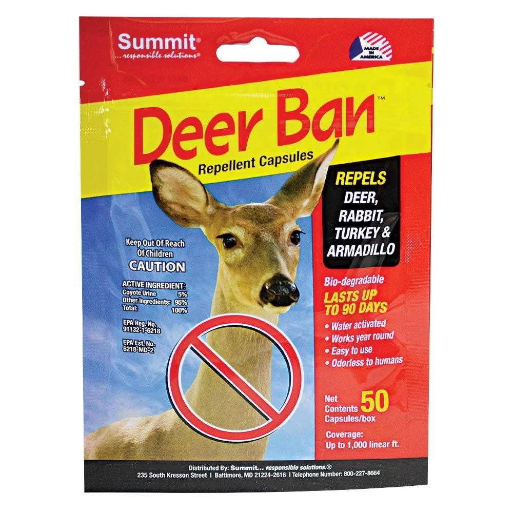 Deer Ban™ uses a unique gel tablet application that contains predator (coyote) urine triggering the animal flight response, discouraging deer from eating plants.