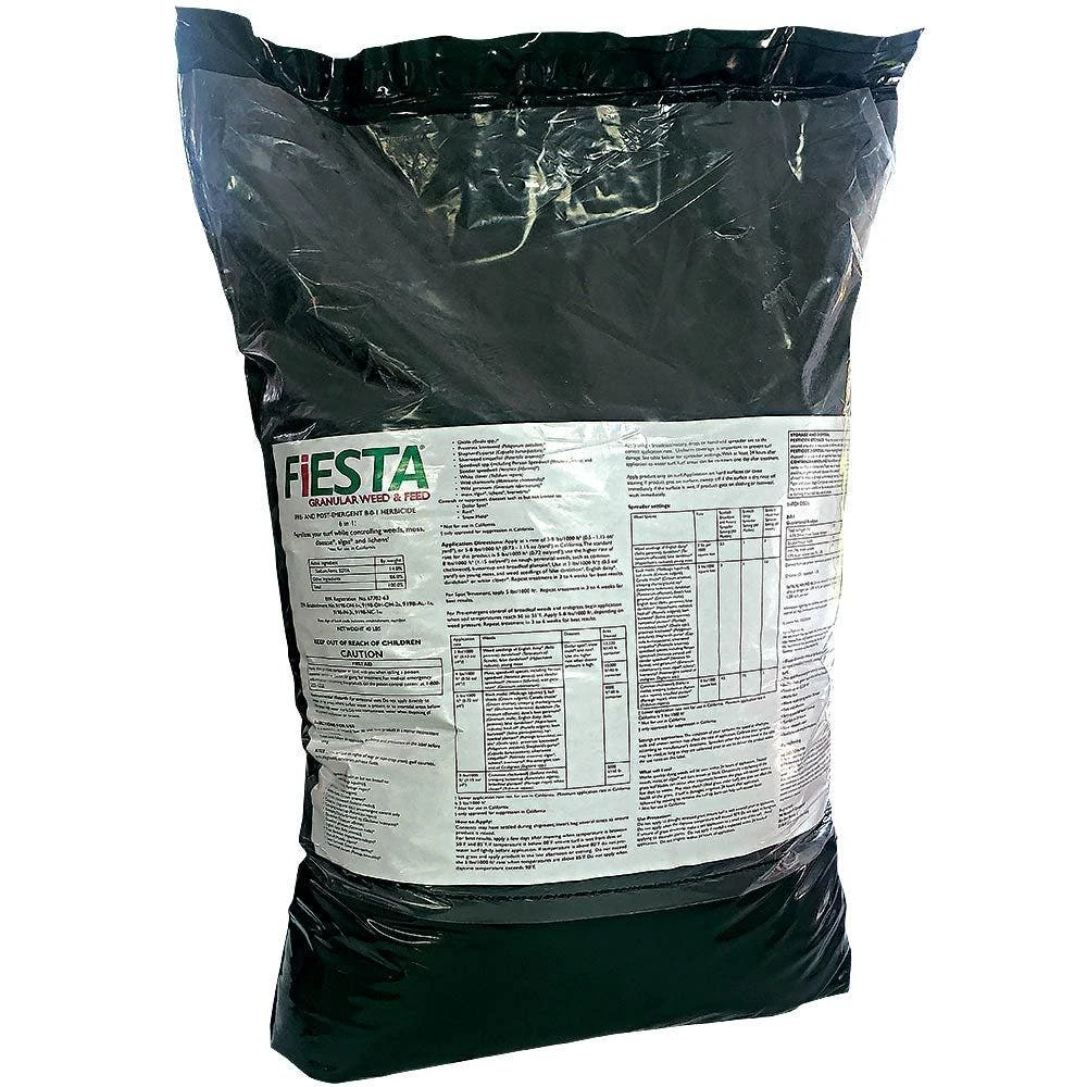Fiesta Granular Weed & Feed is a dual-function product that acts as both a fertilizer and a weed killer. It provides post emergent broadleaf weed control, pre emergent smooth crabgrass control, and also targets moss and algae without harming the turf. It works quickly, with visible results in hours, and promotes thick, green turf in just seven days.