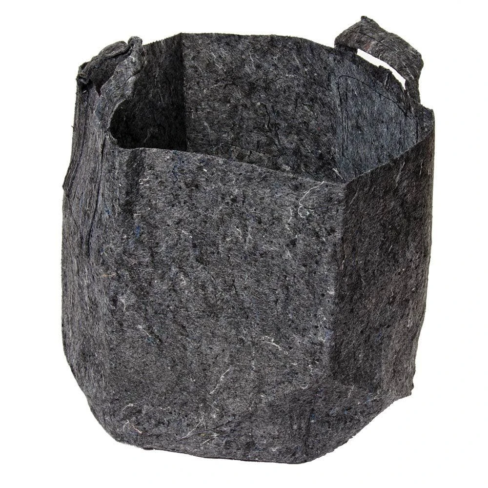 The Root Pouch, 10 Gallon with Handle, 3 4 Year, Bundle of 10 is a plant pot made from recycled natural fibers and recycled bottles, which degrade once planted in the ground. It is great for in ground as well as above ground growing, and comes with attached handles. It has a longevity of 3 to 4 years above ground, which begins when it is filled with growing media and put in the field.