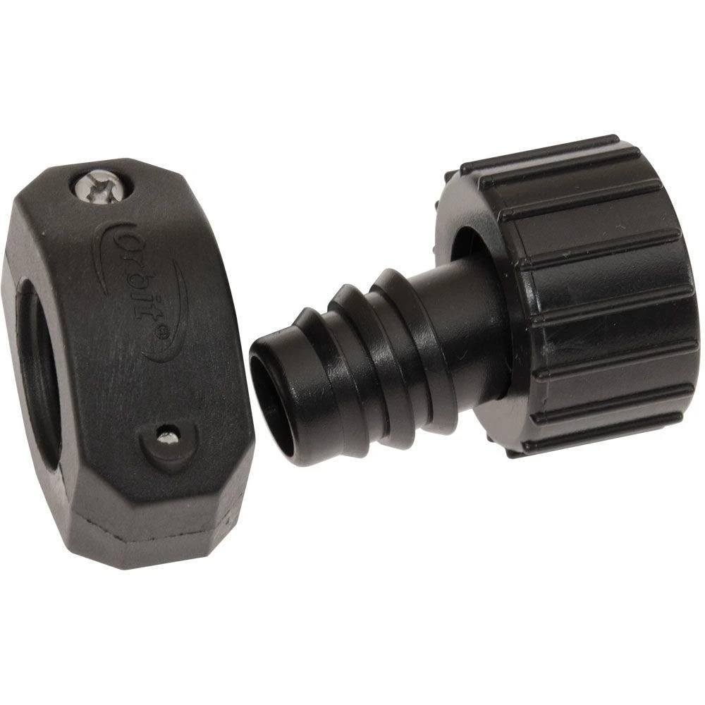 - Female coupler, fits all 5/8 inch to 3/4 inch rubber or plastic hose