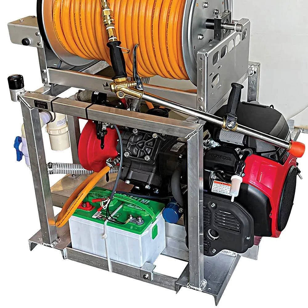 The Kings Skid Sprayer uses the high-performance Hypro D1064GRGI diaphragm pump that can deliver up to 28 gallons per minute, with a maximum pressure of 725 PSI.