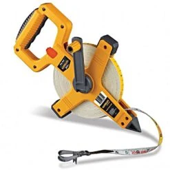 The Komelon Open Reel Fiberglass Tape measures 200 feet in length.