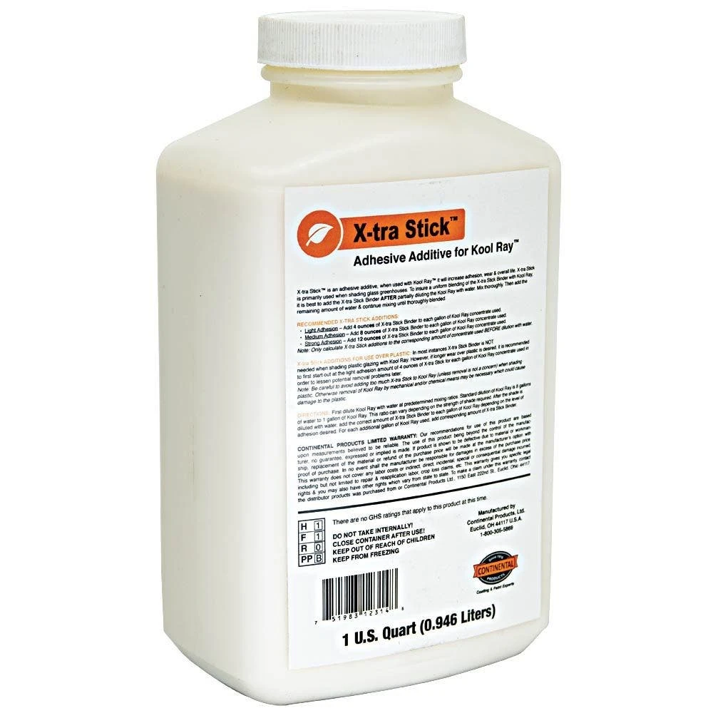 Kool Ray X Tra Stick is an adhesive additive formulated for use with Kool Ray Liquid Shade. It comes in a 32-ounce (1 quart) container.