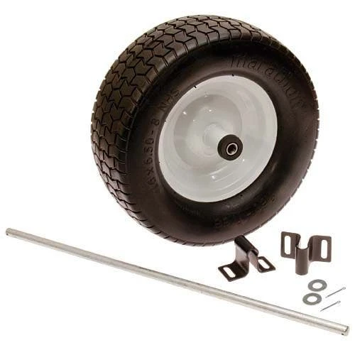 - Comes with one 6″ x 16″ flat-free turf tread wheel and extended axle