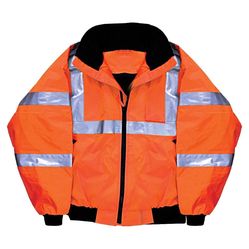 - Hi Visibility orange with reflective striping.