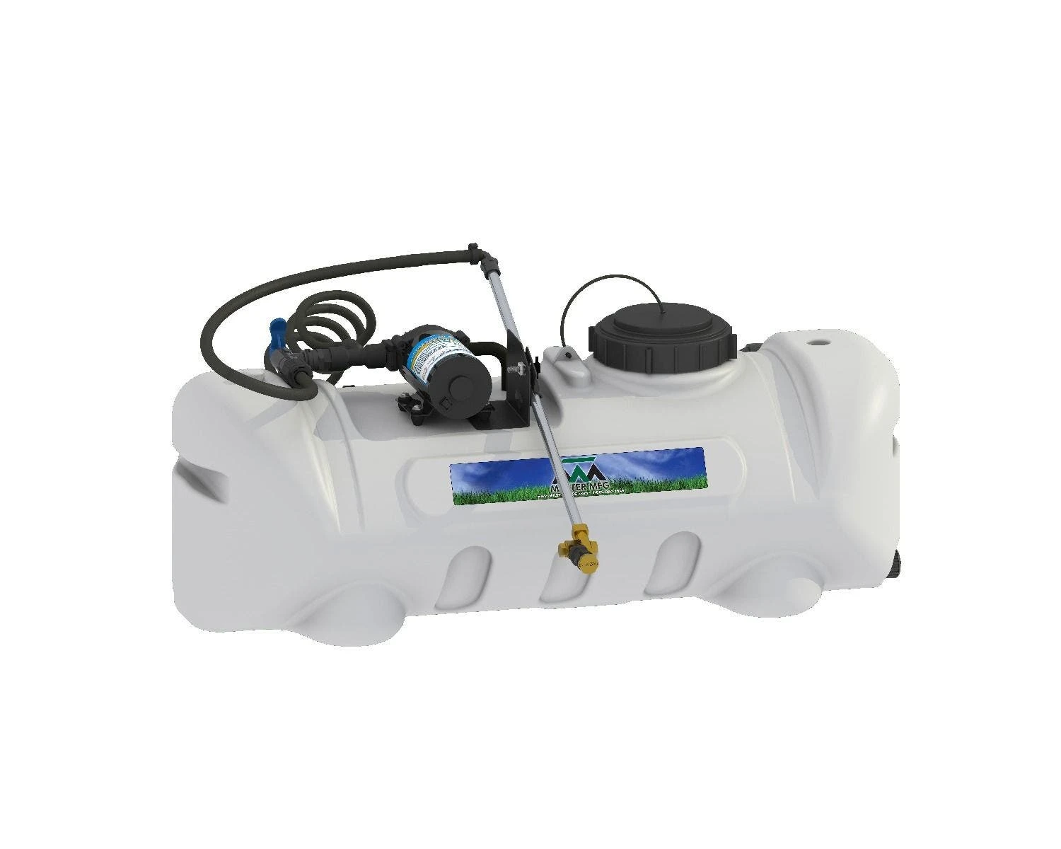 The sprayer has a single boomless broadcast tip that sprays a 16 foot swath.