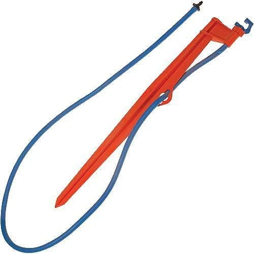 - 13″ highly visible orange stake includes 36″ blue flexible supply tube with barb fitting. Package of 25 assemblies.