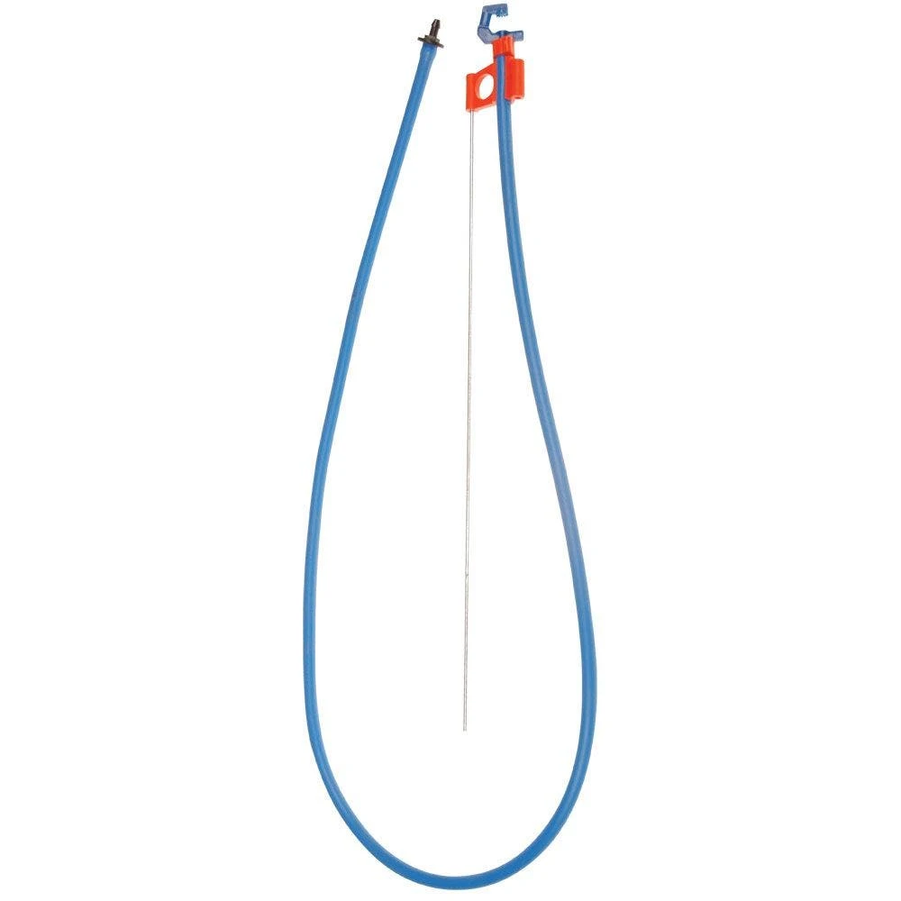 - Complete with 36″ blue flexible supply tube with barb fitting.