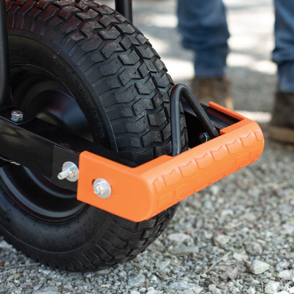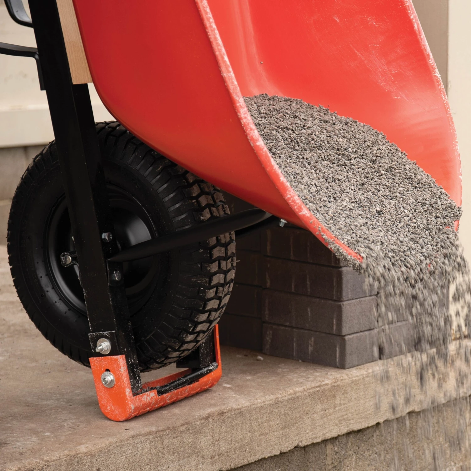 - Anti-skid tire tread pattern helps plant wheelbarrow nose on paved surfaces and off-road terrain