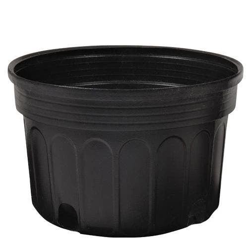 The Trade Small Mum blow molded container measures 8 inches in width and 5.125 inches in height with a volume of .765 gallons.