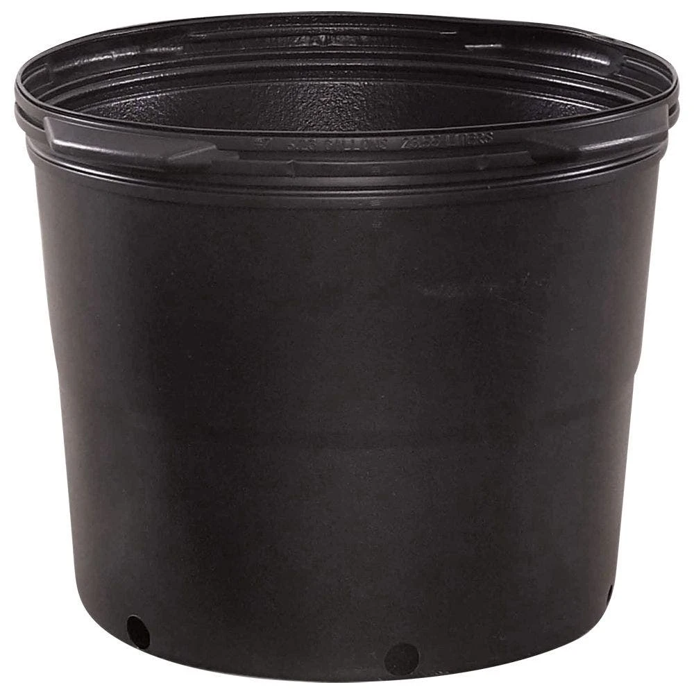 The Haviland Nursery Containers have a top diameter of 14 inches and a height of 11.5 inches. The volume is approximately 6.08 gallons or 23.02 liters. They are also available in a trade size of 7 and come in a bundle count of 30.