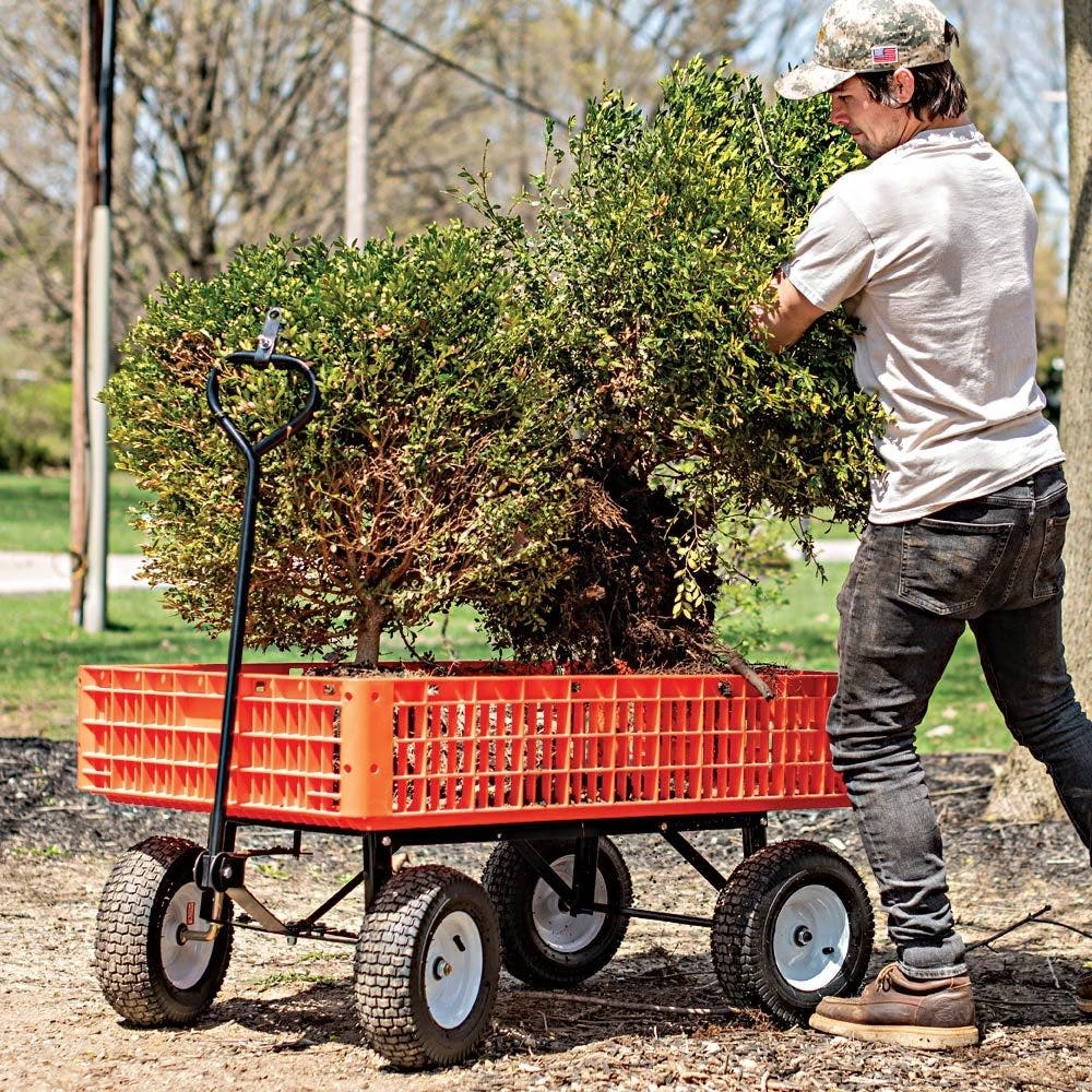 The Leonard Orange Utility Wagon has a weight capacity of 800 pounds.