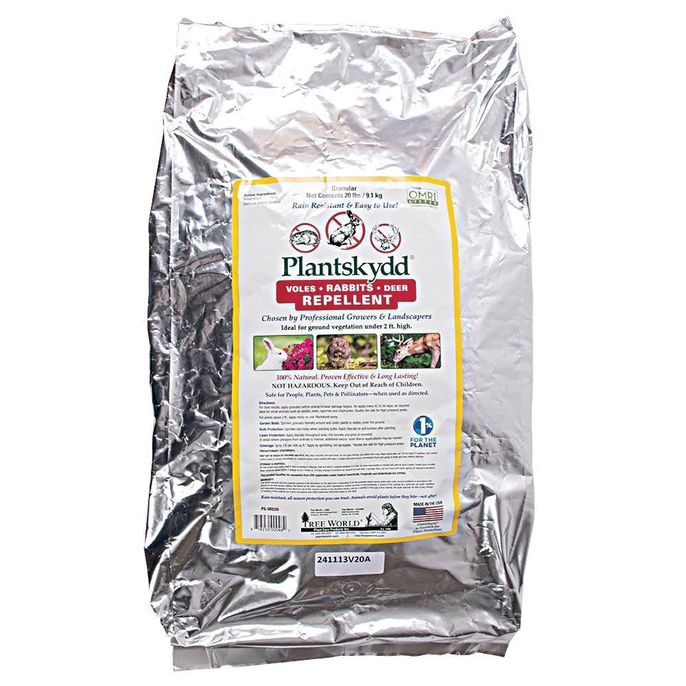 A 20 lb. bag of Plantskydd Granular Repellent will cover 12,000 sq. ft and lasts for 6-8 weeks.