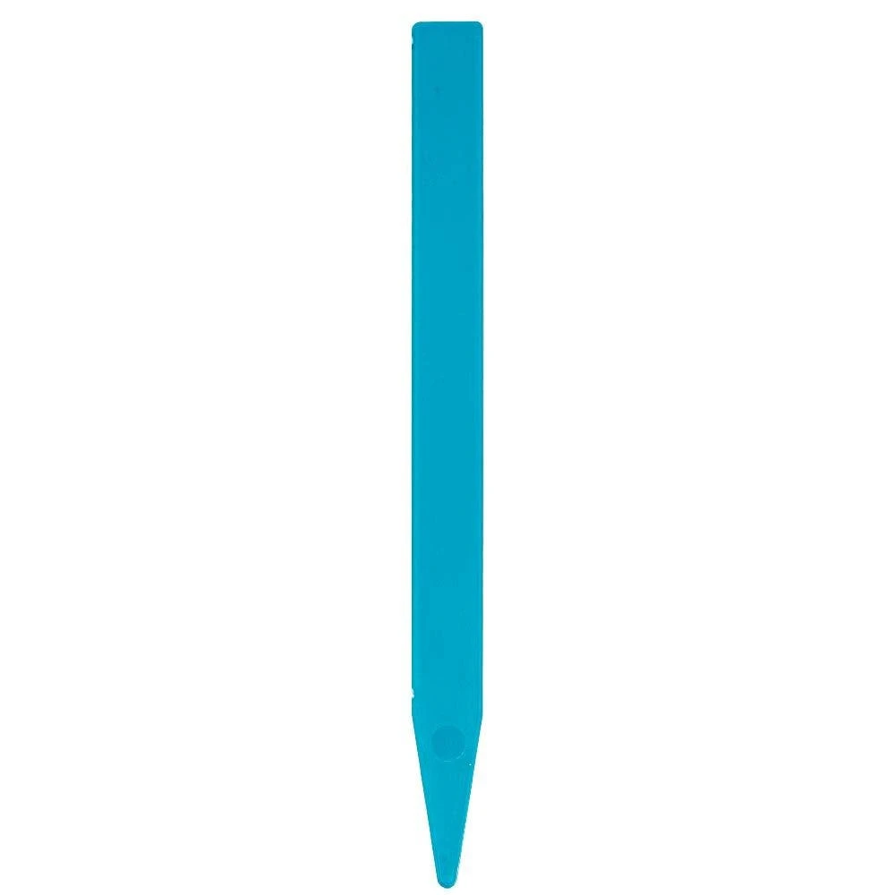 The Pot Stake Plastic 6in x 5/8in Blue Vibrant features top quality, high impact polystyrene in six bright colors, making it durable and colorful. The marking on the stake stays legible, and it is available in red, white, yellow, orange, blue, or green. Each package contains 1000 stakes.