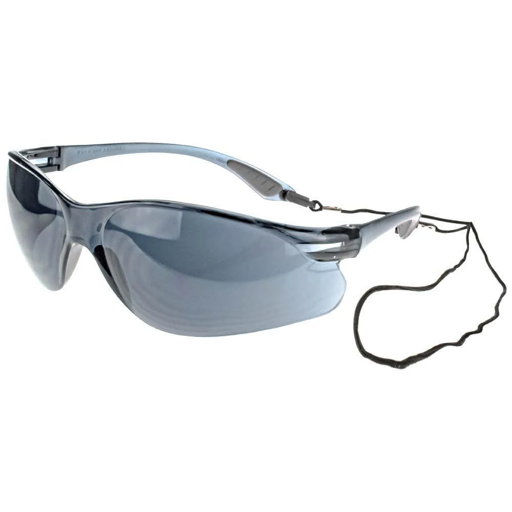 - Impact-resistant polycarbonate lens with hard coat to prevent scratching. Available in clear, clear anti-fog, smoke, and indoor/outdoor lenses. Comes with attachable neck cord.