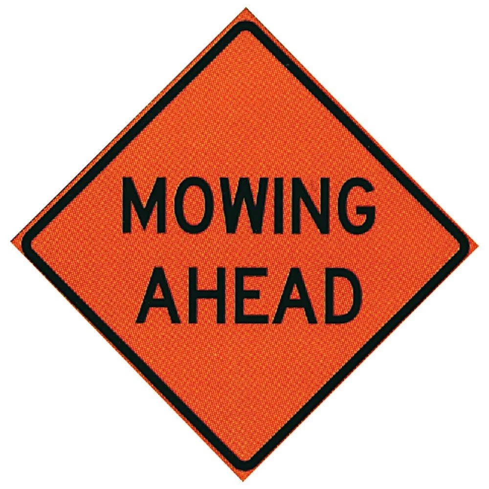 - Mowing Ahead” 36in Diamond Shape High Visibility Mowing Safety Sign