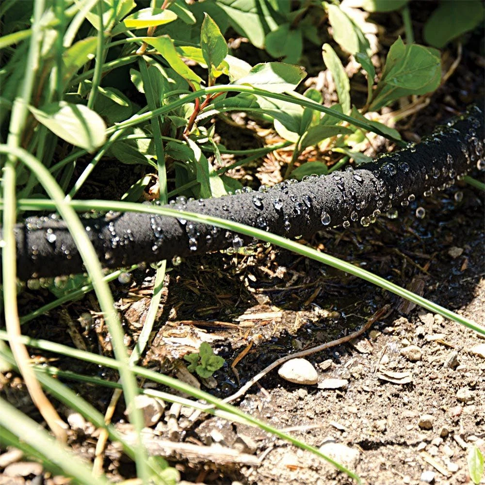 - Premium Soaker Hose provides watering without wasted runoff and reduced evaporation.