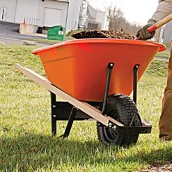 Leonard 10-Cubic-Foot Orange Poly Tray Wheelbarrow With Steel Handles And Pneumatic Tires
