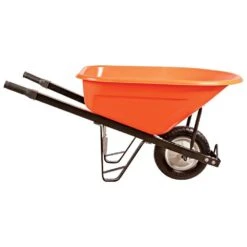 Poly Tray Wheelbarrow, Orange 8 Cu Ft Tray With Steel Handles And Pneumatic Tire By A.M. Leonard