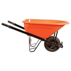 Poly Tray Wheelbarrow, Orange 8 Cu Ft Tray With Pneumatic Tire By A.M. Leonard