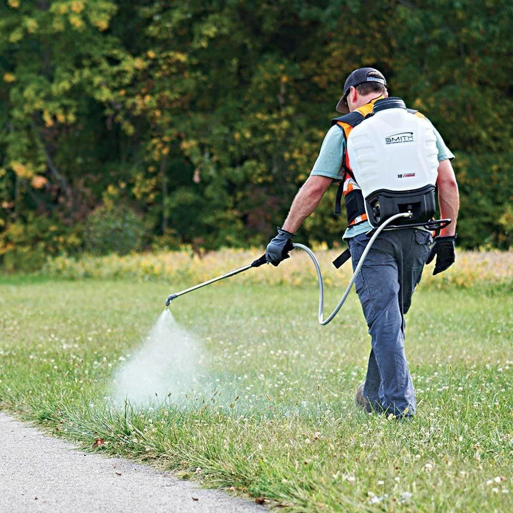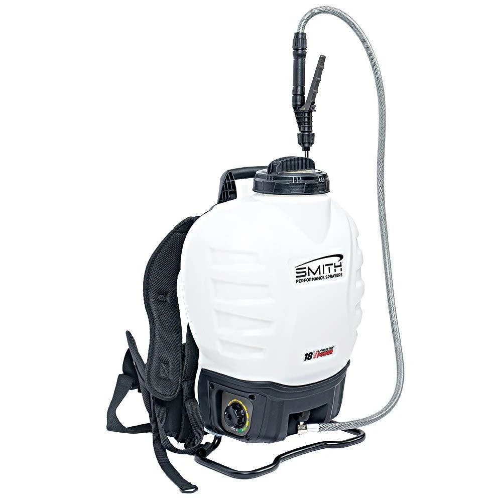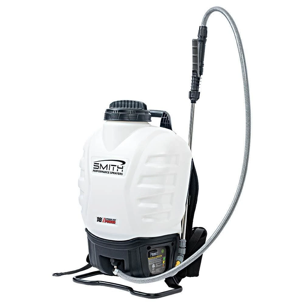 The Smith Multi Use 4 Gallon Lithium Ion Powered Backpack Sprayer has a capacity of 4 gallons.