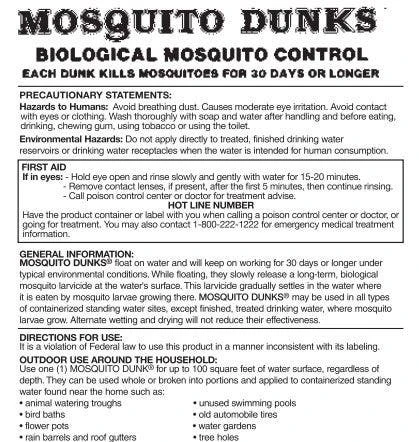 Each Mosquito Dunk lasts for 30+ days in standing water, and one ring can treat up to 100 square feet of surface area.