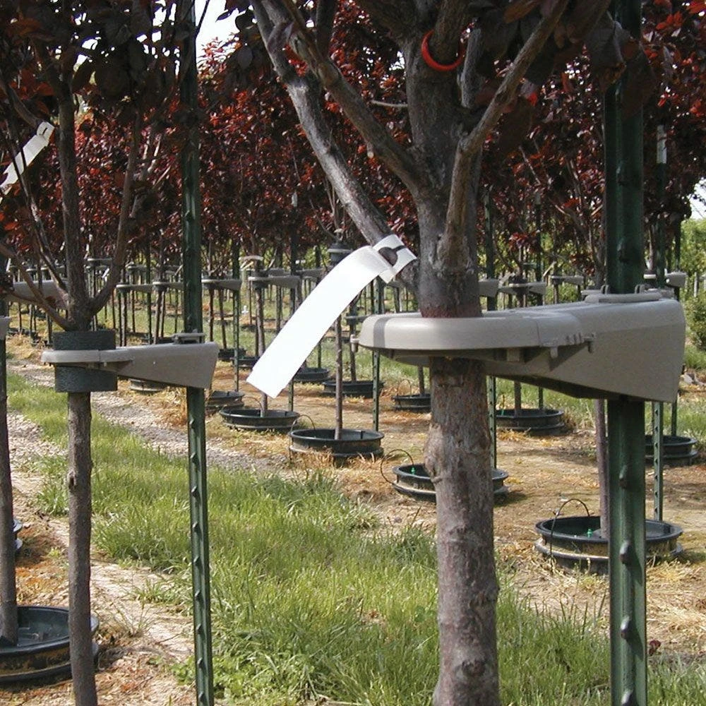 The T Mate O Telescoping Tree Support is a tool to help produce stronger, thicker, and straighter trees by supporting them using T posts (not included). It allows some sway for best growth and can be used in the landscape, nursery, and other applications. It telescopes from 10″ to 15″ and can be installed on either side of a T post to hold one tree or on both sides to hold two trees.