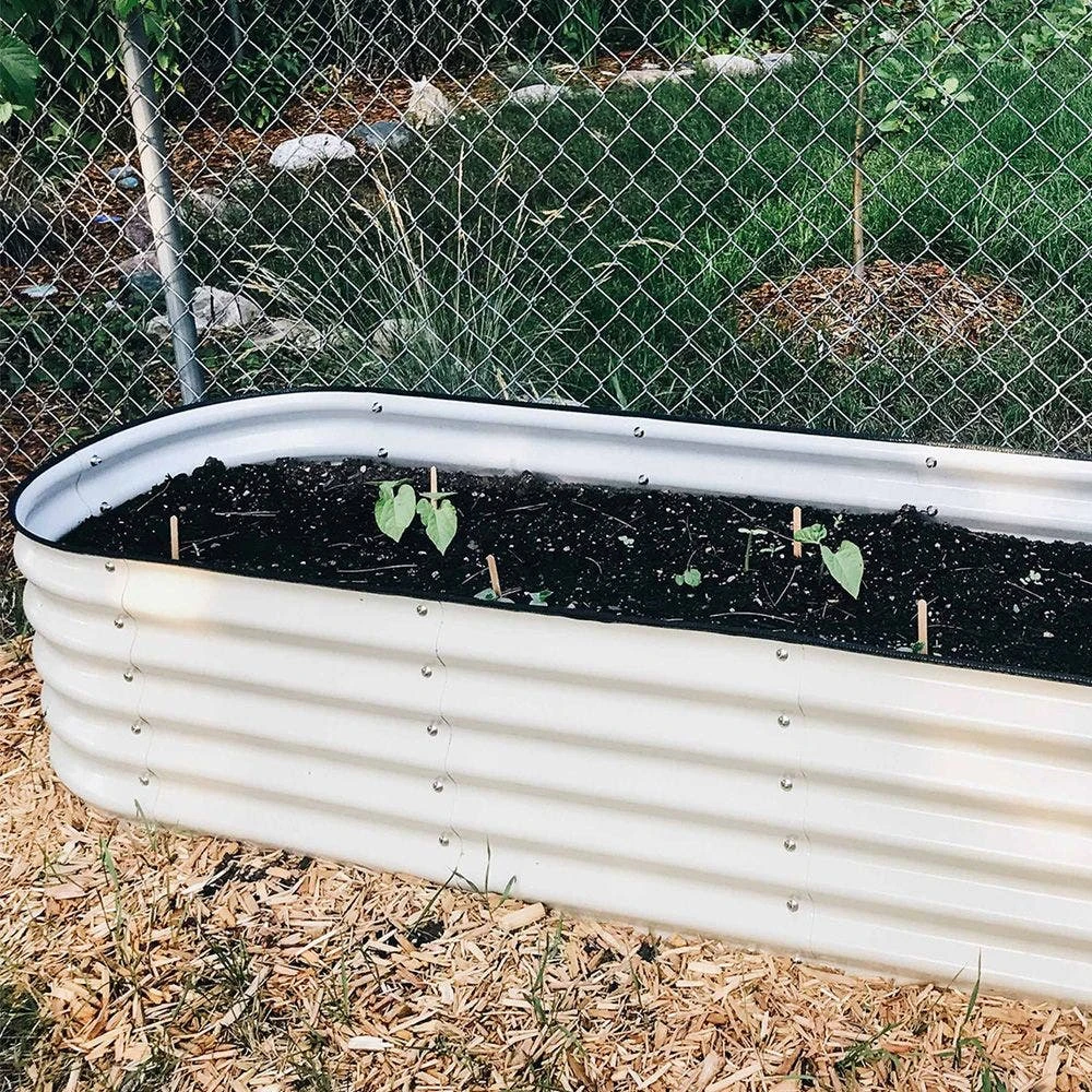 The Vego 6 in 1 Modular Metal Raised Bed is quick and easy to build with multiple configurations. It stands 17 inches tall, promoting healthy root growth. The Aluzinc coated metal is long-lasting and adds essential elements to the soil over time. It is painted with a durable, food-grade paint and comes with a safety strip for protection.
