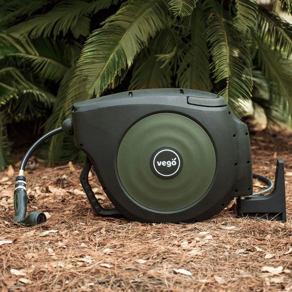 Compared to standard hoses, the Vego Garden Retractable Hose Reel features a wider diameter for greater water pressure. It is also abrasion, kink, and leak resistant, making it ideal for heavy-duty cleaning tasks.